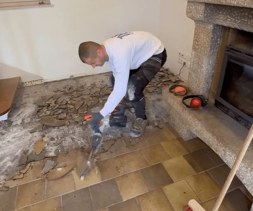 Retrait des anciens carrelages, parquets ou autres revêtements avec des techniques adaptées pour minimiser les dommages.